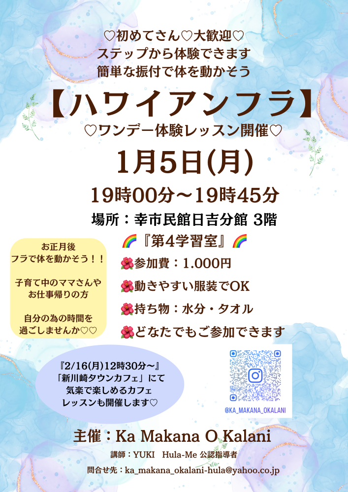 川崎市幸区で、ハワイの自然と心を大切にしたハワイアンフラをお伝えしています。